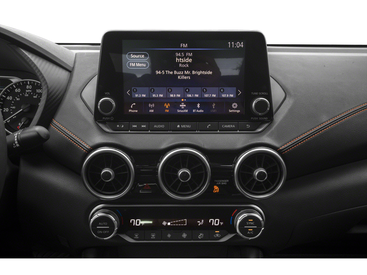 - Radio: AM/FM w/RDS/MP3/Aux-In -inc: 6 speakers, 8" color display w/multi-touch control, streaming audio via Bluetooth®, Bluetooth® hands-free phone system, hands-free text messaging assistant, Siri eyes-free, Google Assistant voice recognition w/Apple CarPlay and Android Auto, NissanConnect, (1) front USB connection port (type A) for iPod interface and other compatible devices, (1) additional front USB (type C) and (1) charge-only USB (type A) center console and SiriusXM radio